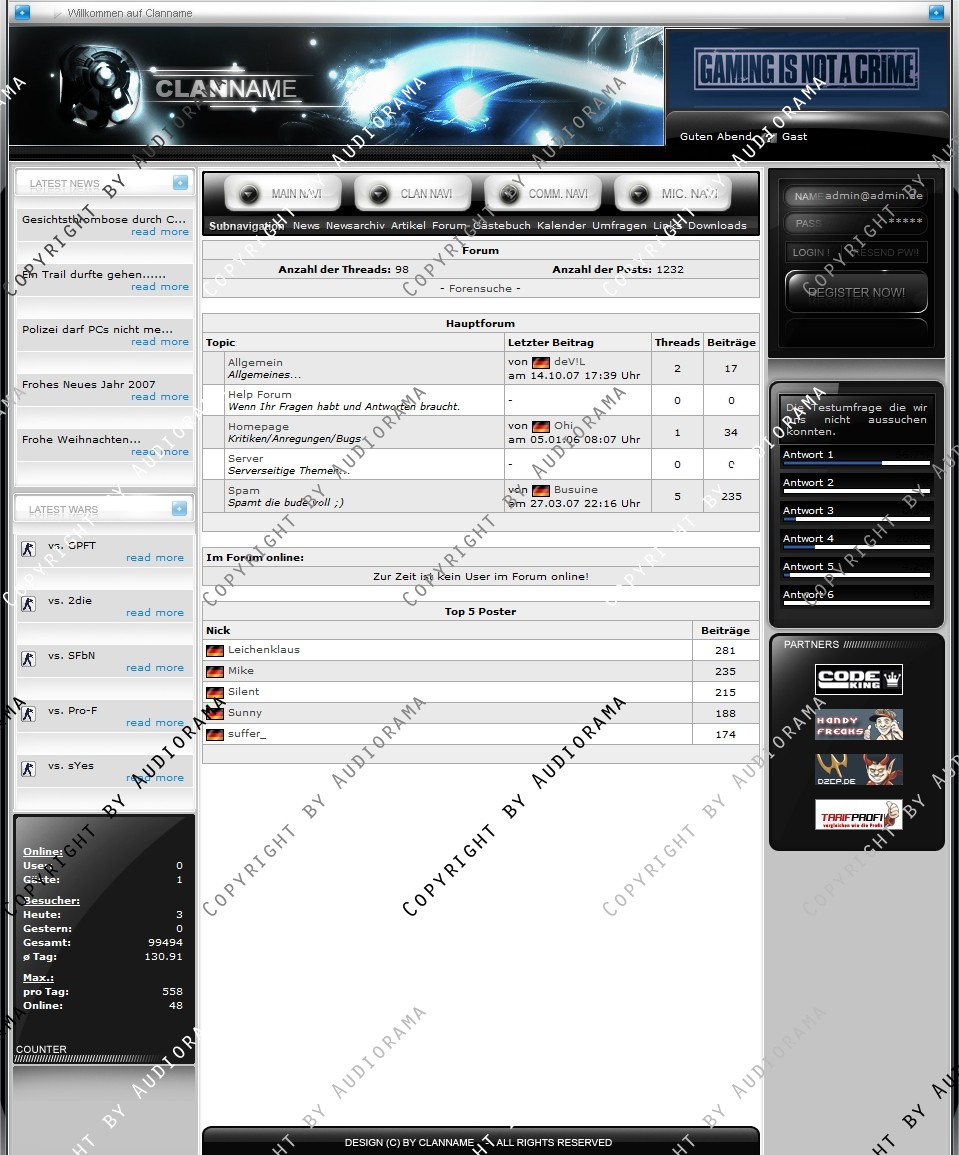 Du hast noch keinen Account auf ClanDesigns.de? Dann kannst du dich hier kostenlos registrieren!